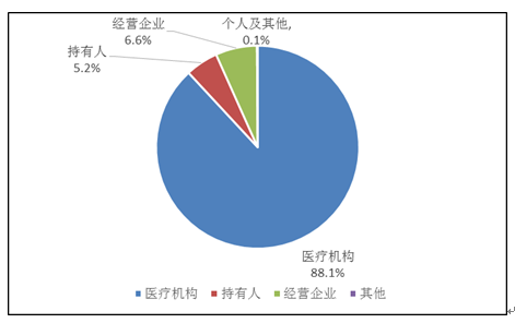 持有人、經(jīng)營企業(yè)和醫(yī)療機(jī)構(gòu)是藥品不良反應(yīng)報(bào)告的責(zé)任單位。按照報(bào)告來源統(tǒng)計(jì),2019年來自醫(yī)療機(jī)構(gòu)的報(bào)告占88.1%;來自經(jīng)營企業(yè)的報(bào)告占6.6%;來自持有人的報(bào)告占5.2%;來自個(gè)人及其他報(bào)告者的報(bào)告占0.1%(圖3)。