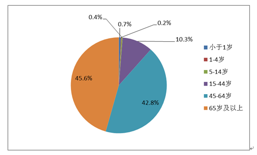 按年齡統(tǒng)計(jì),2019年心血管系統(tǒng)用藥不良反應(yīng)/事件報(bào)告中,45-64歲與65歲及以上年齡組分別占42.8%和45.6%(圖10),遠(yuǎn)高于其他年齡組比例;嚴(yán)重報(bào)告中,65歲及以上年齡組占51.9%。